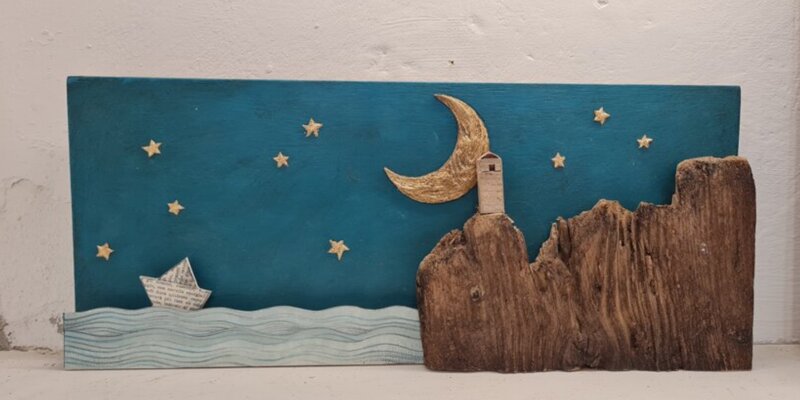 Realizzata interamente a mano, questa opera racchiude un momento fragile e senza tempo, dove la quiete della notte incontra il desiderio di perdersi e, forse, ritrovarsi.