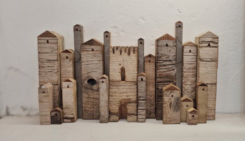 Opera realizzata interamente a mano con legno di recupero Dimensione cm 19x36,5