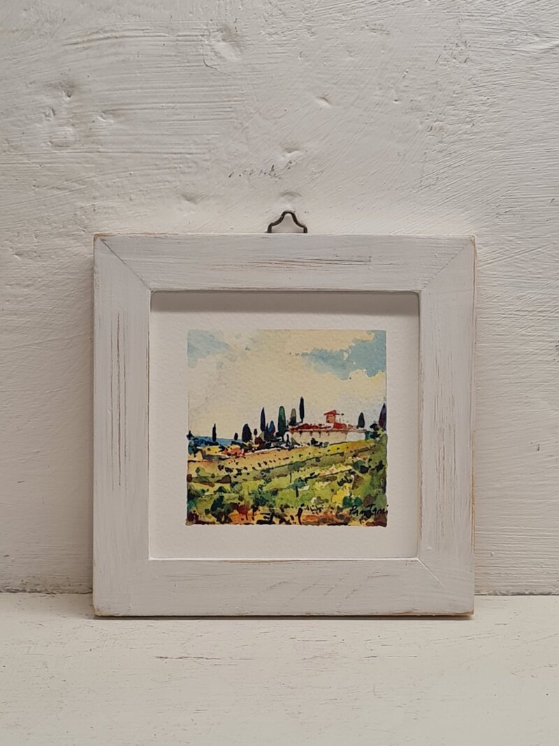 eDimensione cm 14x14Nelle opere di Massimo Pantani, possiamo ritrovare tutti gli elementi del paesaggio toscano: un riflesso dell'acqua, un placido cielo primaverile, un angolo di paesaggio, un vicolo silenzioso di città, le robuste torri di San Gimignano .