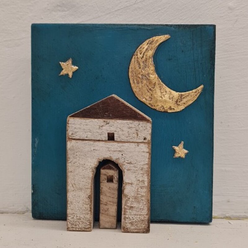 Golden moons and stars add a delicate, dreamlike touch, evoking peaceful nighttime atmospheres.