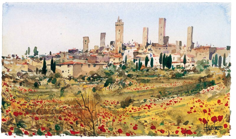 Questa toscana di Massimo Pantani è rappresentata in maniera straordinaria con la sua varietà di scorci: le colline, le vigne i casolari di campagna fino ad arrivare al mitico panorama di San Gimignano. I colori di questi acquerelli non sono mai li stessi tra di loro, ma variano a seconda della stagione che viene raffigurata, regalandoci così un'infinita varietà di paesaggi nei quali possiamo perderci in pensieri romantici e suggestivi.