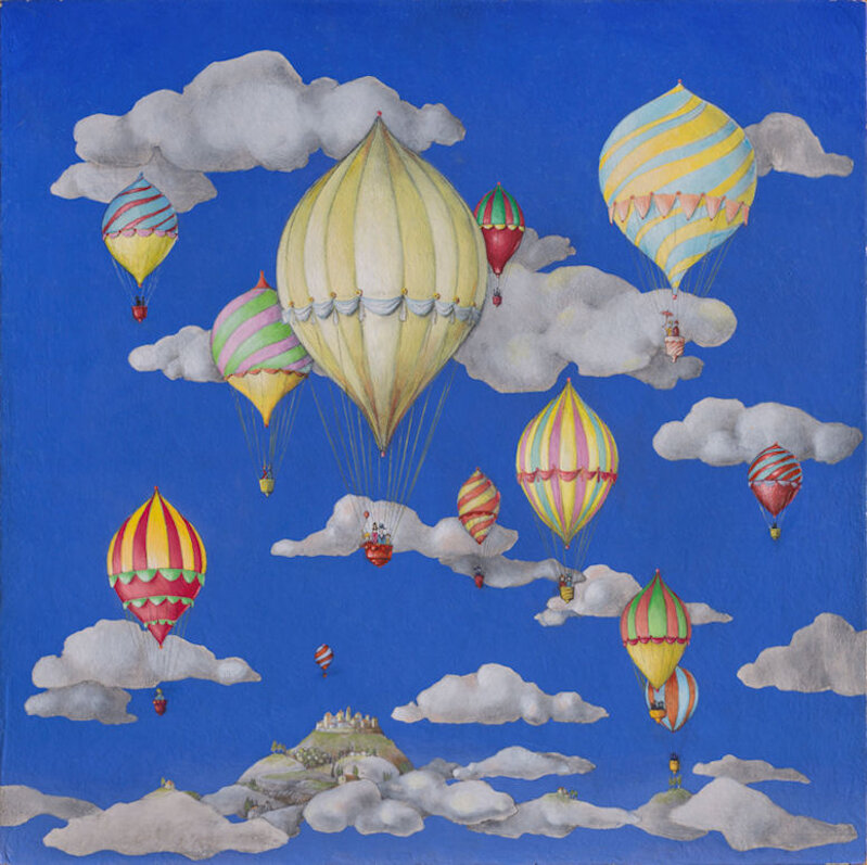 Le stampe sulle mongolfiere di Alessandro Pantani hanno la capacità di farci sognare: è un tipo di pittura, questa, che ci riporta ai ricordi dall'infanzia, che ci fa ritornare un po'bambini sognanti, come un tempo lo siamo stati.